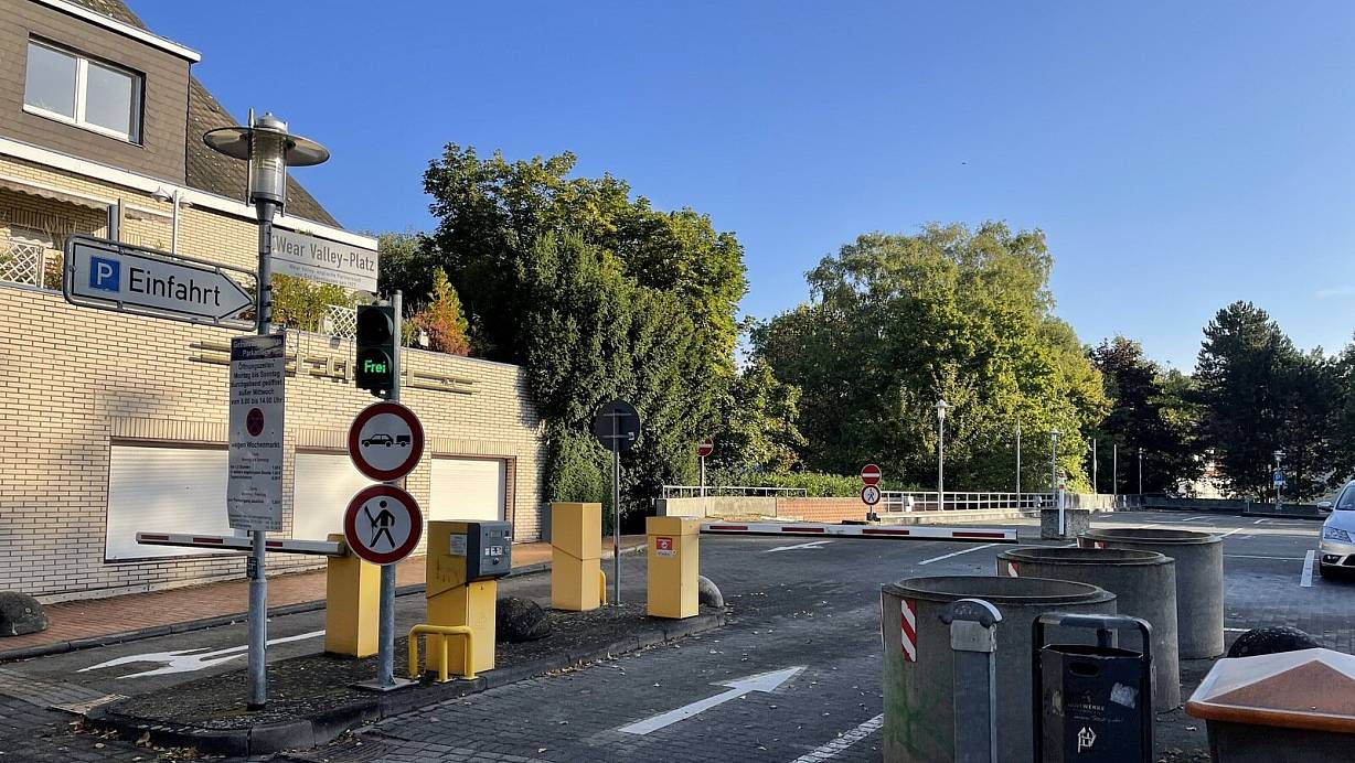 Die Parkanlage am Wear-Valley-Platz ist während des Wochenmarktes gesperrt. Auch darauf sollen Autofahrer künftig mit einer dynamischen Anzeigetafel hingewiesen werden. | © Heidi Froreich