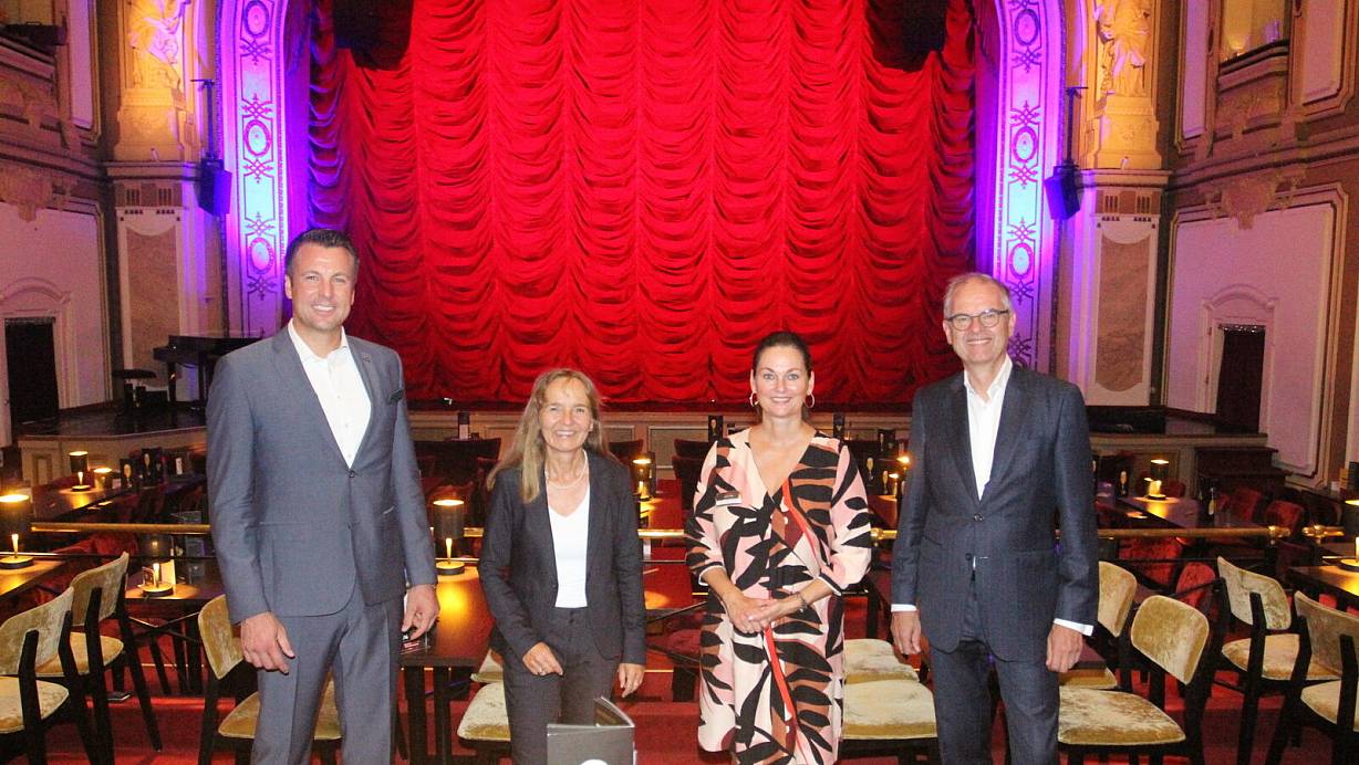 Die IHK im GOP: Theaterdirektor Christoph Meyer (v. l.) mit IHK-Hauptgeschäftsführerin Petra Pigerl-Radtke, GOP-Ausbilderin Janine Wattenberg und IHK-Präsident Wolf D. Meier-Scheuven. | © Ulf Hanke