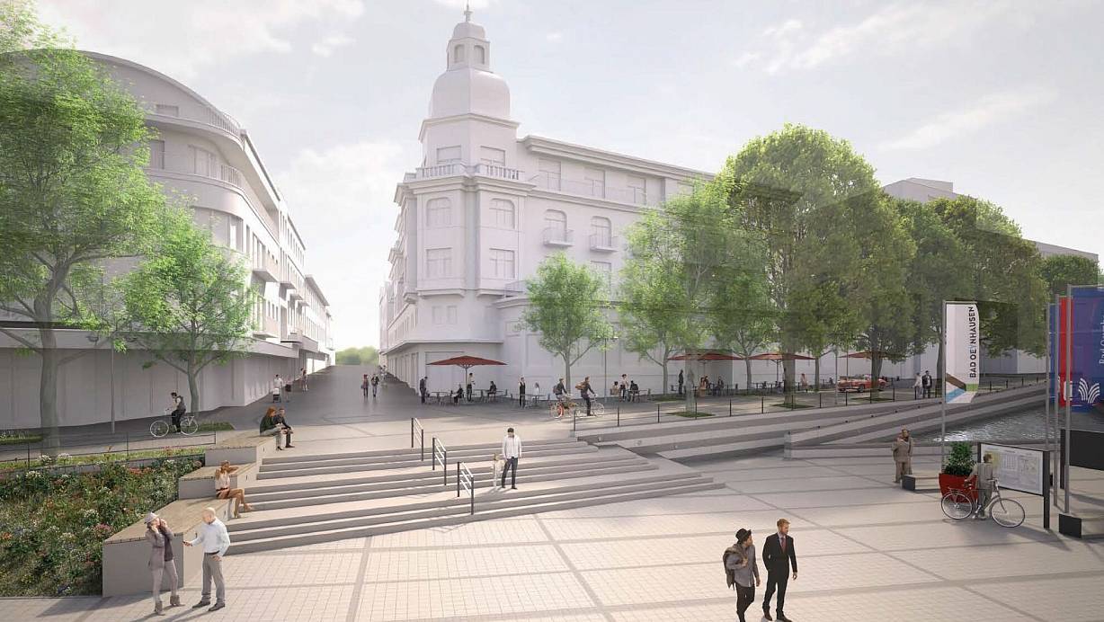 Freier Blick auf die Innenmstadt: Eine großzügige Treppenanlage soll die Mauer zwischen Bahnhofsvorplatz und Herforder Straße ersetzen. | © Nagel Plant