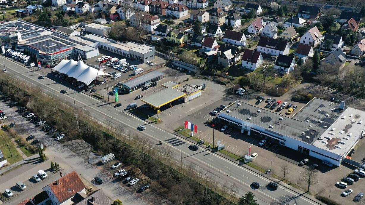 Das Luftbild zeigt die Dimensionen des Autohauses, dass sich bald noch weiter entlang der Kanalstraße ausbreitet. | © Peitzmeyer