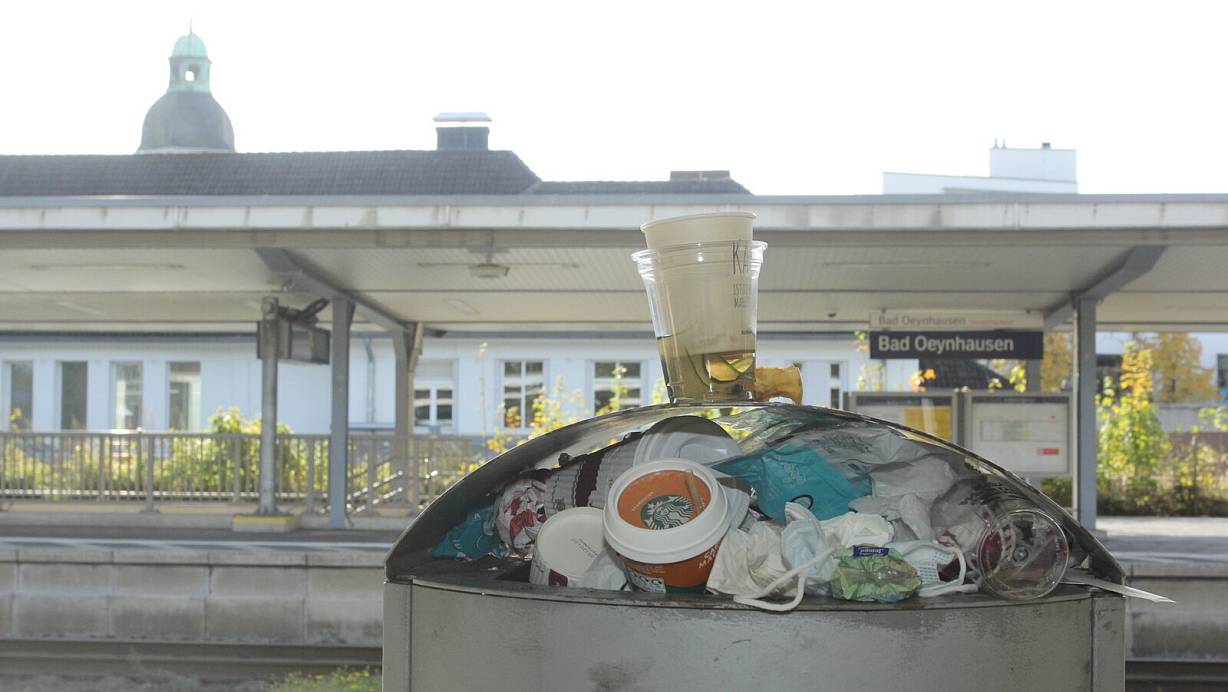 Müllchaos in Bad Oeynhausen: Abfalleimer im Nordbahnhof immer wieder überfüllt