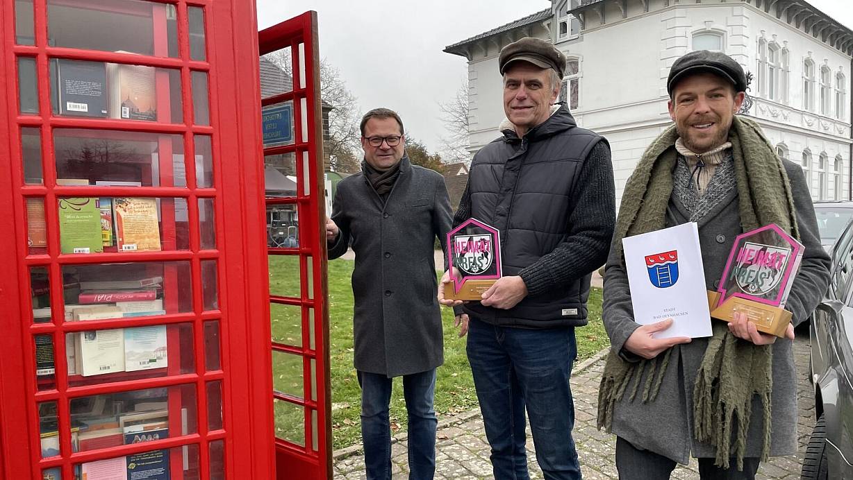 Für ihr Engagement, die rote Telefonzelle an der Rehmer Kirche als kleine Bücherei zu etablieren, wurde die Initiative "Zusammen sind wir Rehme" mit dem zweiten Heimatpreis ausgezeichnet. Der erste Preis geht an den Rehmer Heimatverein und sein Projekt "Spökenkieker-Nacht".
