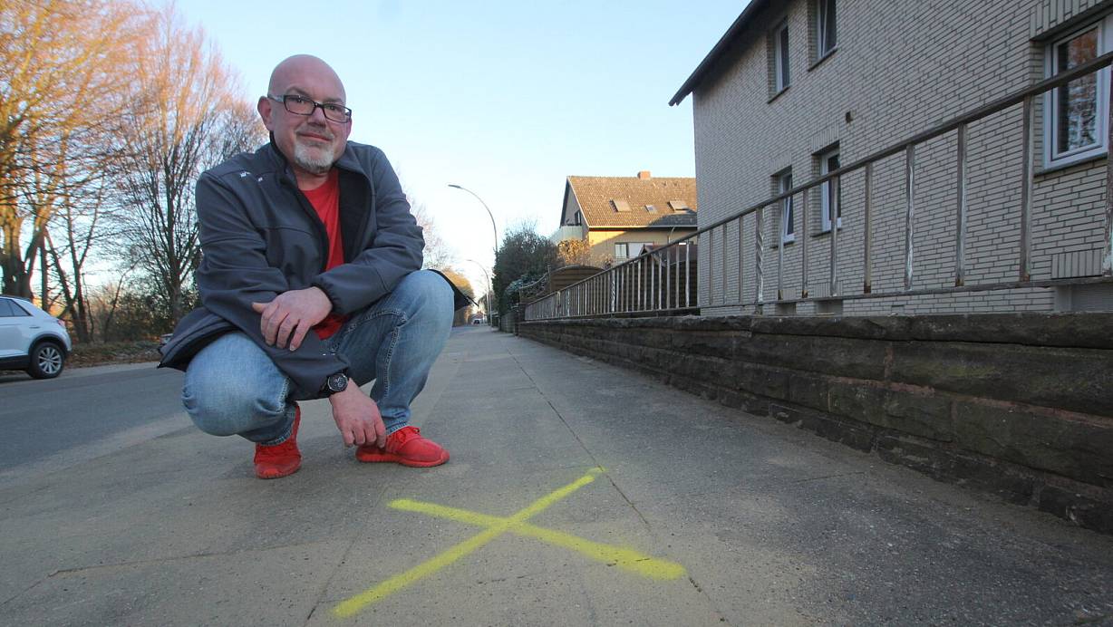 Unter dem gelben Kreuz auf dem Bürgersteig vor der Wohnung von Lutz Brunke ist das Internet kaputt. | © Ulf Hanke