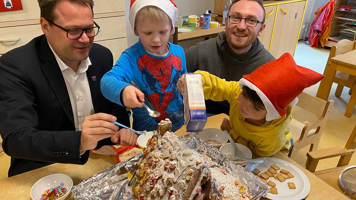 Als Bürgermeister Lars Bökenkröger vor Weihnachten die Kita in Dehme besuchte, war Artur Atschkassow noch der kommissarische Leiter. Nun wird er der Mann an der Spitze. | © Nicole Sielermann