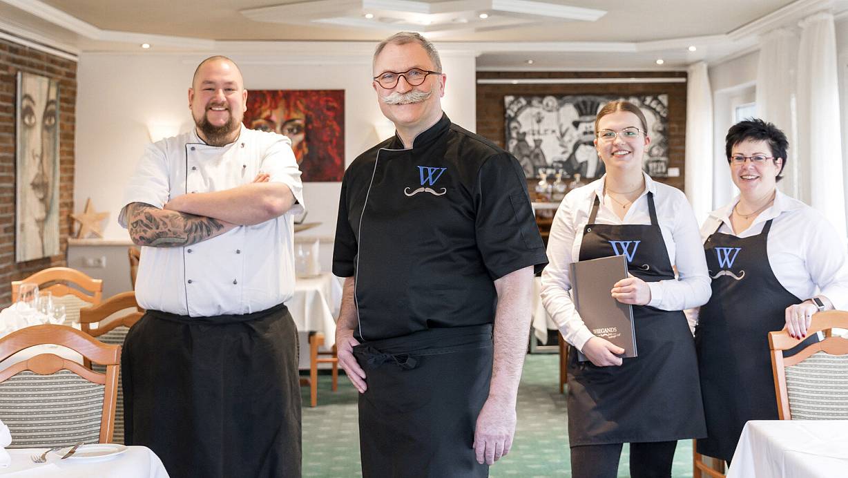Küchenchef Matthias Chimento (l.), Inhaber Frank Wiegand, Serverviceleiterin Yvette Thorwirth und Stelle-Mari Niemann sind stolz auf die Auszeichnung. | © Klaus Lorke NO LIMIT FOTODESIGN / Germany
