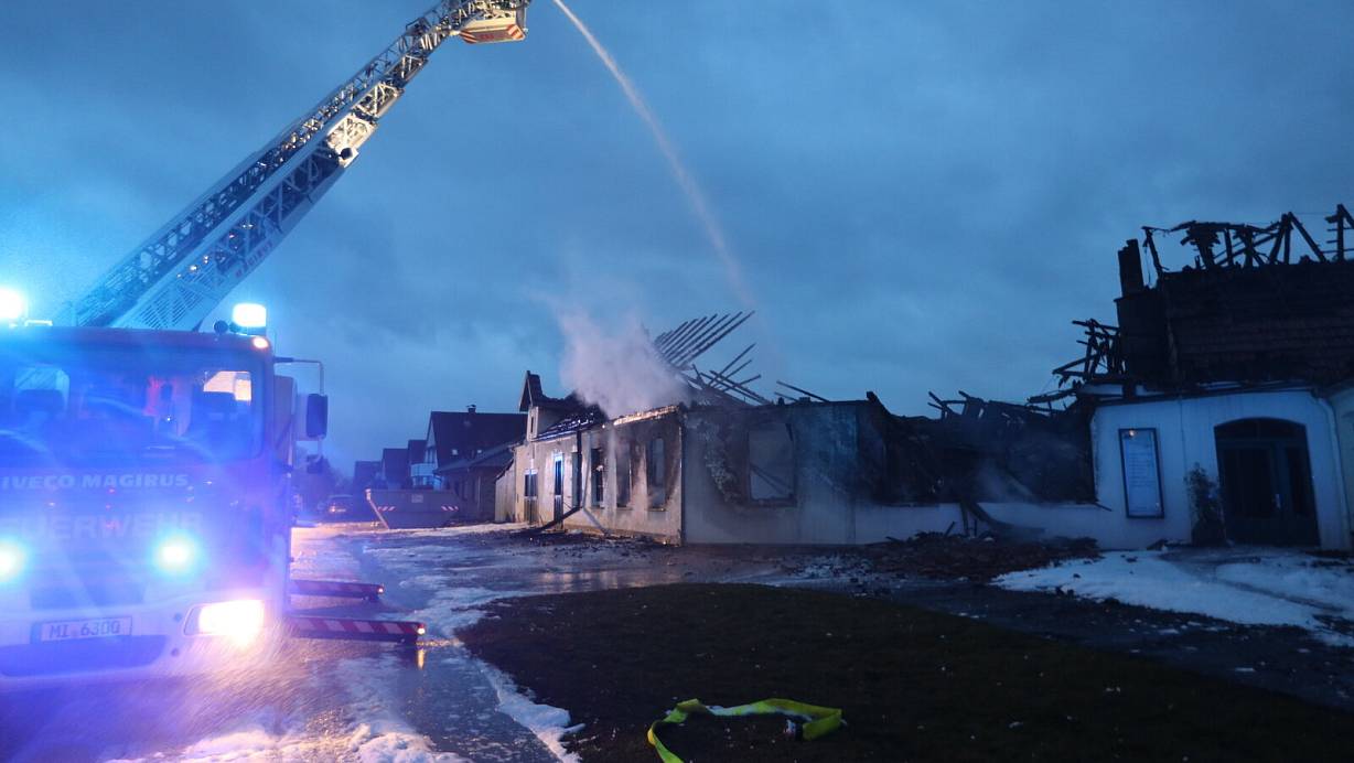 Die alteingesessene Tischlerei Grothe in Wulferdingsen wurde zerstört. Die Feuerwehr war in der Nacht mit rund 100 Einsatzkräften vor Ort.