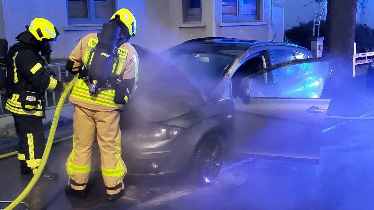 Feuerwehr löscht brennendes Fahrzeug am Freitagabend an der Niederbecksener Straße. Die Hauptamtliche Wache ist zu dem Einsatz gerufen worden.