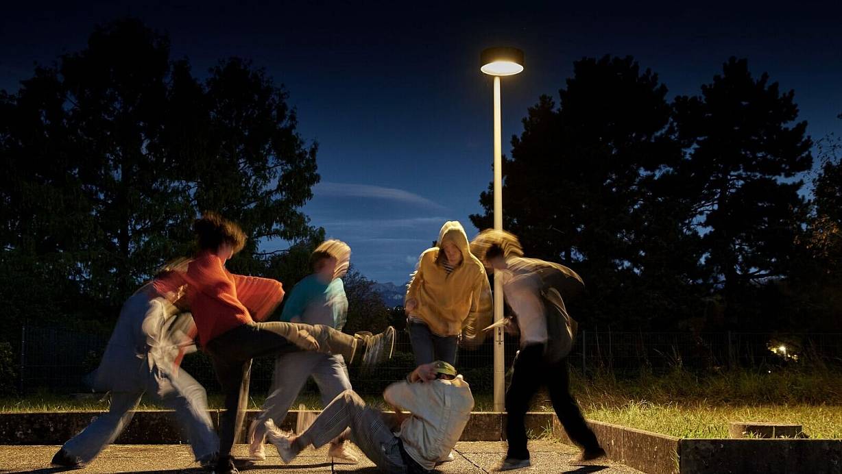 In dieser gestellten Szene wird ein am Boden liegender Jugendlicher von einer Gruppe Jugendlicher getreten. Die Gewalt- und Straftaten einer Gruppe Jugendlicher sind auch in Bad Oeynhausen ein Problem. | © Symbolbild: CHRISTOF SCHUERPF/picture alliance