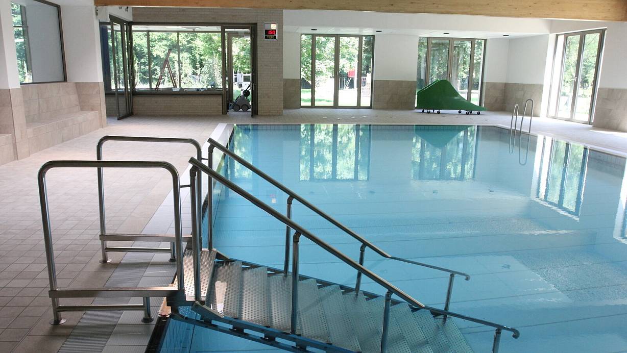 Das Mehrzweckbecken wird überwiegend von Reha-Sportlern und Grundschulen genutzt. Für Familien mit Kindern wurde zur Belustigung eine mobile Rutsche auf Rädern angeschafft (im Hintergrund). | © Ulf Hanke