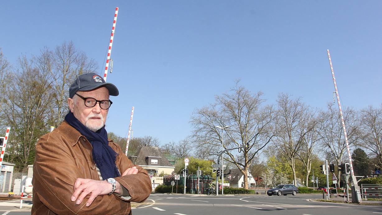 Roland Wedig (78) am Bahnübergang Detmolder Straße, während des Bahn-Streiks am Freitagvormittag. Von seinem Wohnzimmer aus hat er a Montag gesehen, wie sich ein Zug durch die Autos den Weg zum Südbahnhof bahnte. | © Ulf Hanke