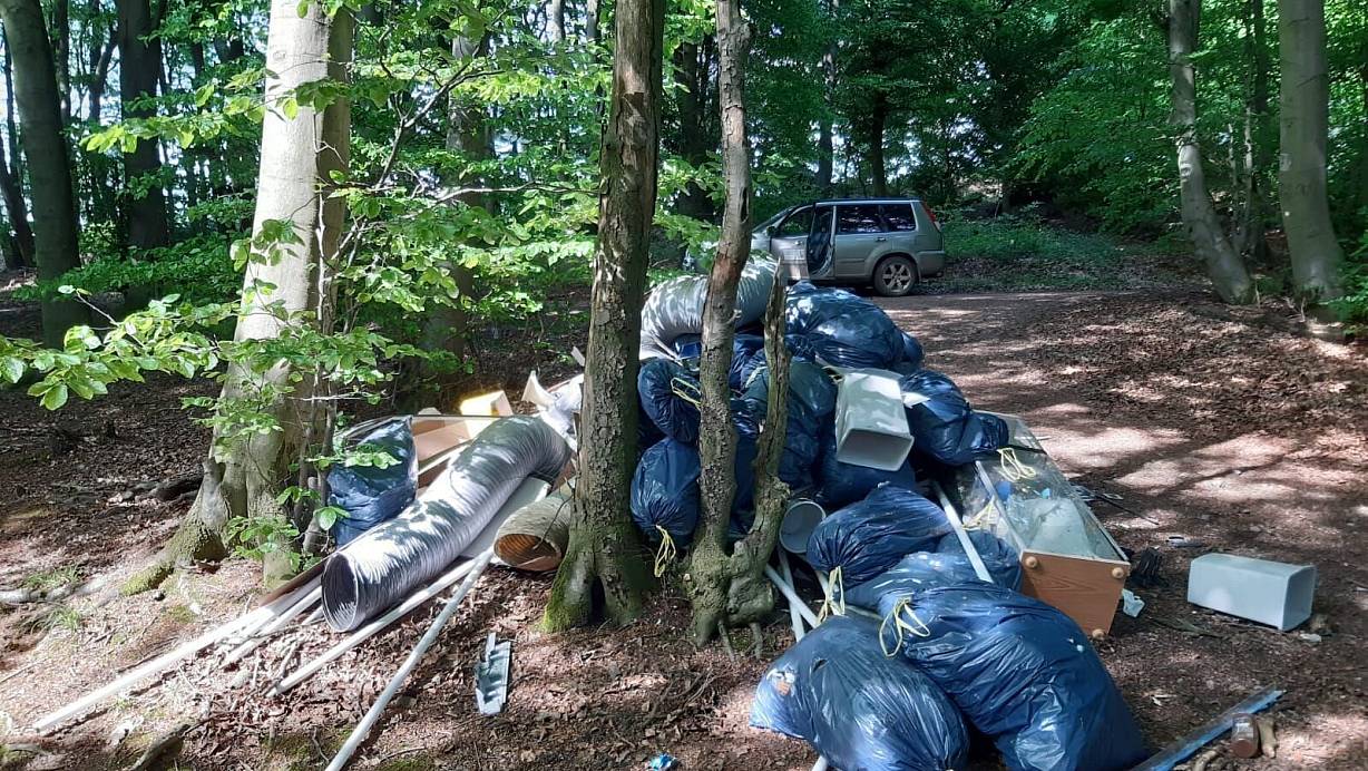Unbekannte haben große Abfallmengen am Wanderweg zwischen Lutternscher Egge und Wildem Schmied abgeladen. Es gibt Hinweise, dass es sich um Hinterlassenschaften eines Bielefelder Sonnenstudios handeln könnte.