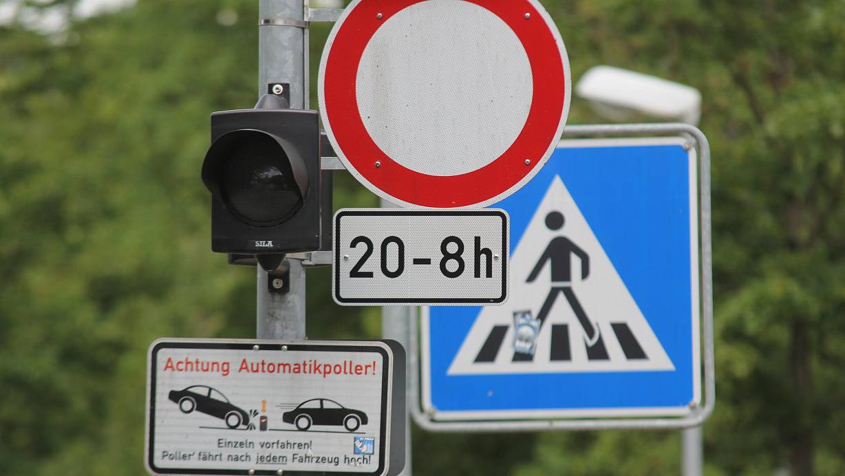 Trotz defekter Poller gilt die nächtliche Straßensperrung - für alle Fahrzeuge, so die Polizei. Hat die Stadtverwaltung ein Schild vergessen?