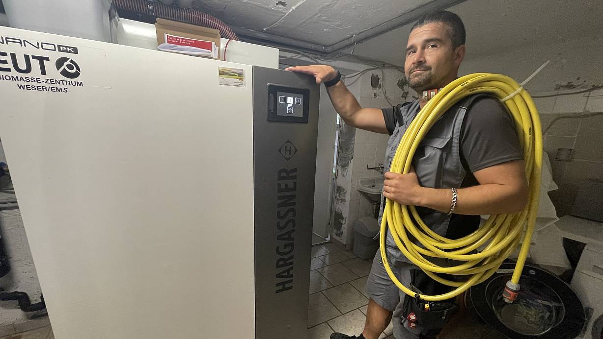 Anlagenmechaniker Tim Rasenberger überprüft eine Pellet-Heizung. | © Elke Niedringhaus-Haasper