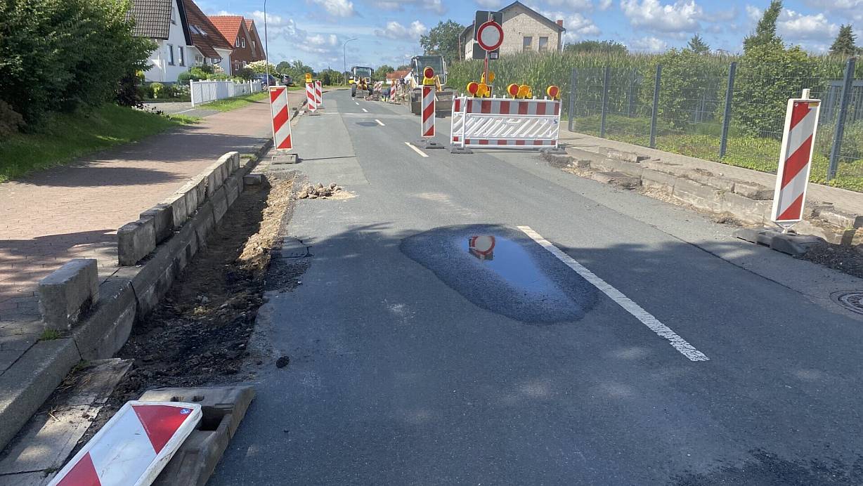 Derzeit werden die Entwässerungsrinnen ausgebuddelt, bevor der eigentliche Straßenbau beginnt. Dann gilt die Vollsperrung bis Mitte Oktober.
