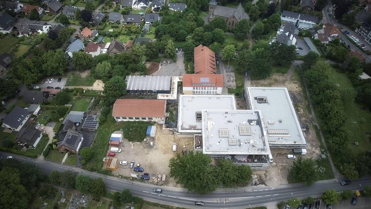 Der Neubau der Grundschule Edinghausen wurde zum Start des neuen Schuljahres zumindest teilweise in Betrieb genommen. Das Gebäude ist auf vier Klassen pro Jahrgang ausgelegt und kostet rund 23 Millionen Euro. | © Thorsten Ulonska