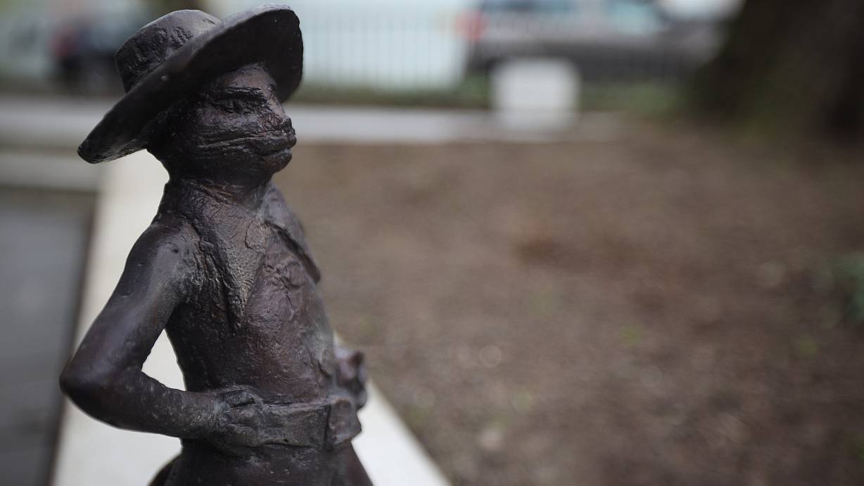 Der gestiefelte Kater auf dem Platz an der Deutschen Bank wurde schon Ziel einer Farbattacke. | © Jörg Stuke