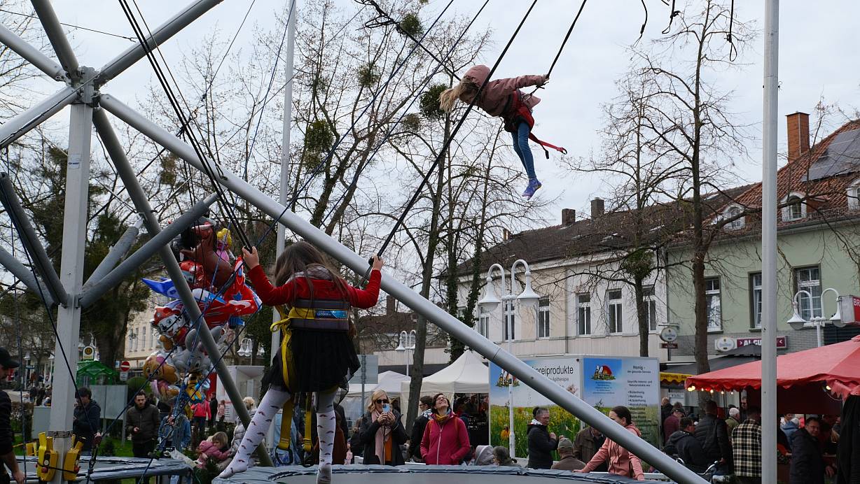 Eine Open-Air-Veranstaltung für alle Generationen. Während sich die Jüngsten auf dem Bungee-Trampolin vergnügen, schlendern Eltern und Großeltern über den Markt.