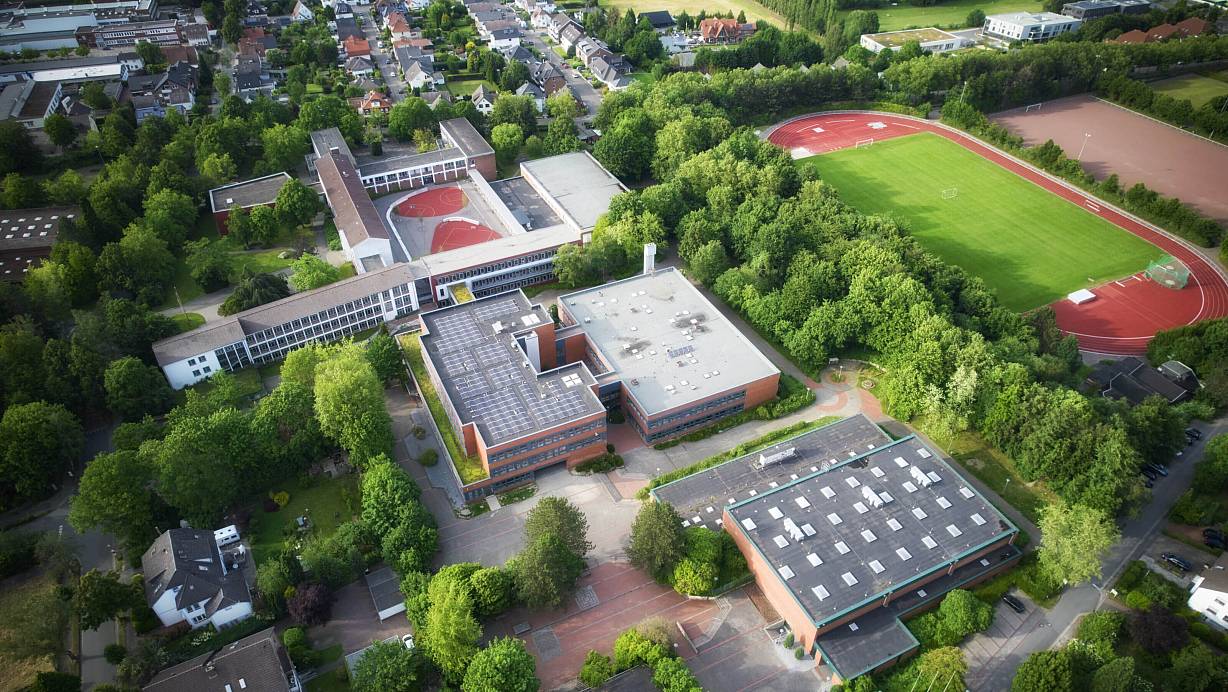 Vorne ist das Immanuel-Kant-Gymnasium zu sehen, im Hintergrund die Realschule Süd. Wo genau die neue Mensa irgendwann ihren Standort im Schulzentrum Süd haben wird, ist noch unklar. | © THORSTEN ULONSKA