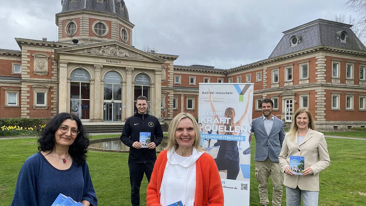 Ruzanna Shahinyan (v. l.), Daniel Koberstein und Cordula Theine waren bei der Präsentation der neuen Gesundheitsbroschüre dabei. Christian Barnbeck und Beate Krämer freuen sich auf die neue Freiluftsaison. | © Nicole Sielermann