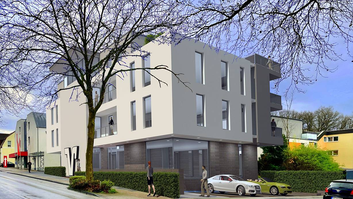 Damit entstehe hier Raum für zehn moderne Wohnungen mit einer Größe zwischen 71 und 131 Quadratmetern, die künftig durch die Volksbank vermietet werden sollen. Die Bank selbst plane, ihre Geschäftsstelle Südstadt, die sich derzeit noch gegenüber befindet, mit Fertigstellung des Baus ebenfalls ins Erdgeschoss des neuen Wohn- und Geschäftshauses zu verlagern.