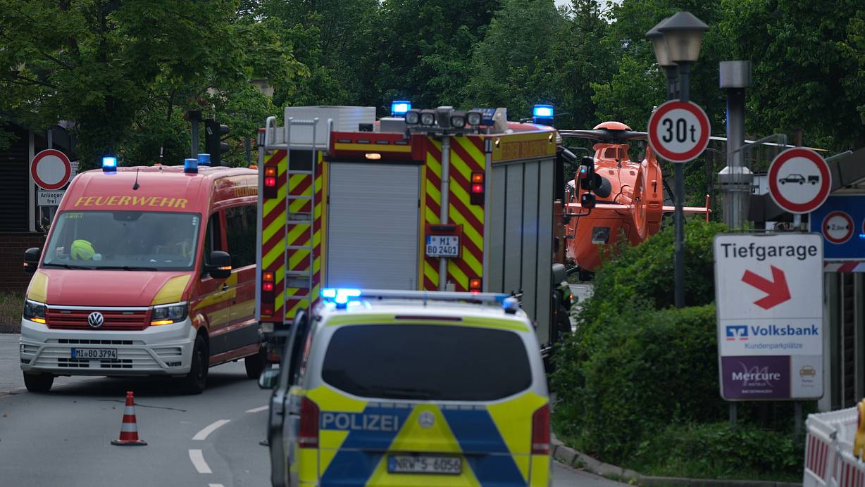 Der Intercity aus Amsterdam nach Berlin steht hinterm Bahnhof Bad Oeynhausen. Die Feuerwehr ist im Einsatz. Ein Rettungshubschrauber ist gelandet. | © Ulf Hanke