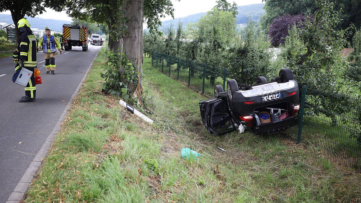 Unfall in Bad Oeynhausen: Volvo landet auf dem Dach im Straßengraben