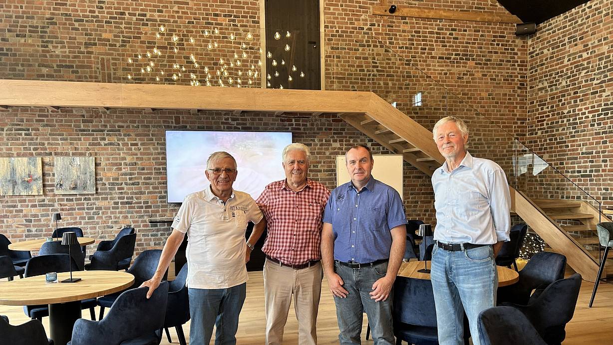 In der neugestalteten Scheune freuen sich Erwin Mattegiet (v. l.), Wilhelm Nolting, Andre Haft und Horst Brönstrup auf das Dehmer Backfest. | © Nicole Sielermann