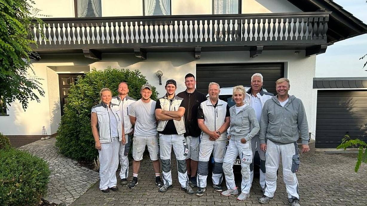Das Team: Christina Südmersen (v. l.), Daniel Südmersen, Nico Scherf, Christoph Teuber, Kevin Weimann, Tim Dodd, Christine Aling, Uwe Lein und Andrej Warkentin. | © Malerbetrieb Heinz Südmersen