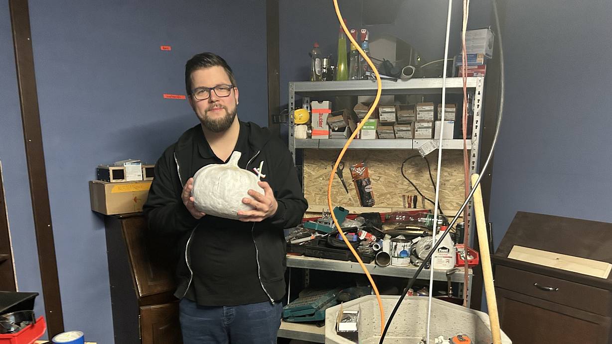 Sebastian Haupt zeigt Equipment, das später im dritten Rätselraum an der Königstraße stehen wird. Noch ist Großbaustelle im Untergeschoss, doch bereits ab November soll der Zauber-Raum buchbar sein. | © Nicole Sielermann