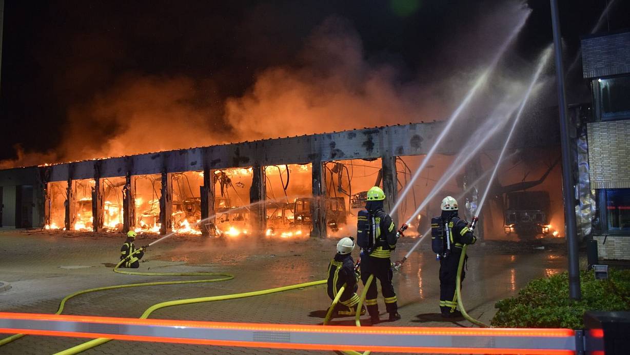 Fahrzeughalle brennt