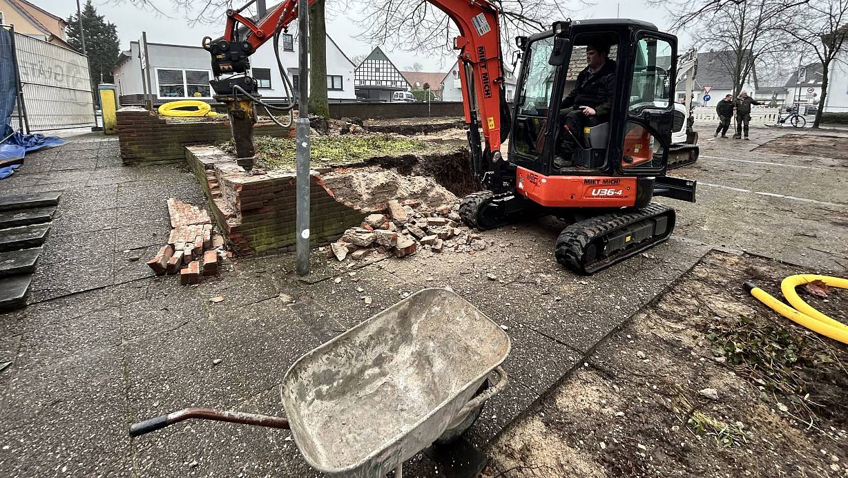 Marvin Brakmann von der Firma Grätz beseitigt die alten Mauern, die gleichzeitig als Beeteinfassungen gedient haben. | © Nicole Sielermann