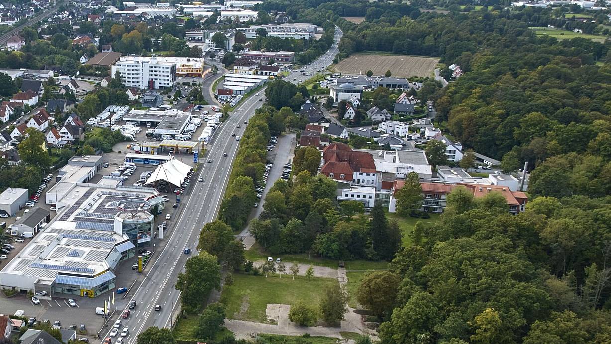 Eine direkte Zufahrt von der Kanalstraße zur Augustre-Viktoria-Klinik (rechts) und dem geplanten Standort des neuen Krankenhauses wünschen sich alle Fraktionen. Vorgesehen ist sie im beschlossenen Bebauungsplan aber nicht. | © Thorsten Ulonska