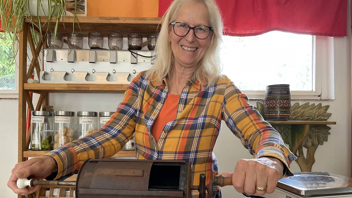 Dagmar Meerkötter ist mit ihrem Rösthaus in den ehemaligen Hausladen an der Gaststätte Reinkensmeier in Wulferdingsen gezogen. Obwohl der Kaffeepreis mächtig angezogen ist, hat die 67-Jährige in anderthalb Tonnen Rohkaffee investiert.