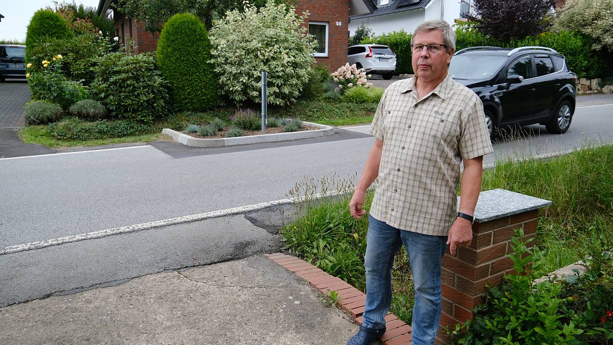 Auf der Straße „Werster Heide“ hat die Stadt im Juni verkehrsberuhigende Elemente installiert. Mit Konsequenzen für Andreas Vogt, denn der kommt nun kaum noch auf sein Grundstück.