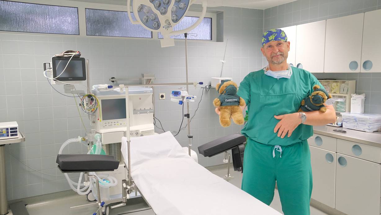 Am Tag der offenen Tür öffnet in der Artemed-Fachklinik Prof. Dr. Dr. Salfeld auch die Teddy-Klinik. Für Kinder, die kein eigenes Kuscheltier mitbringen, hat Chefarzt Frank Wolter Paten-Bären. | © Nicole Bliesener