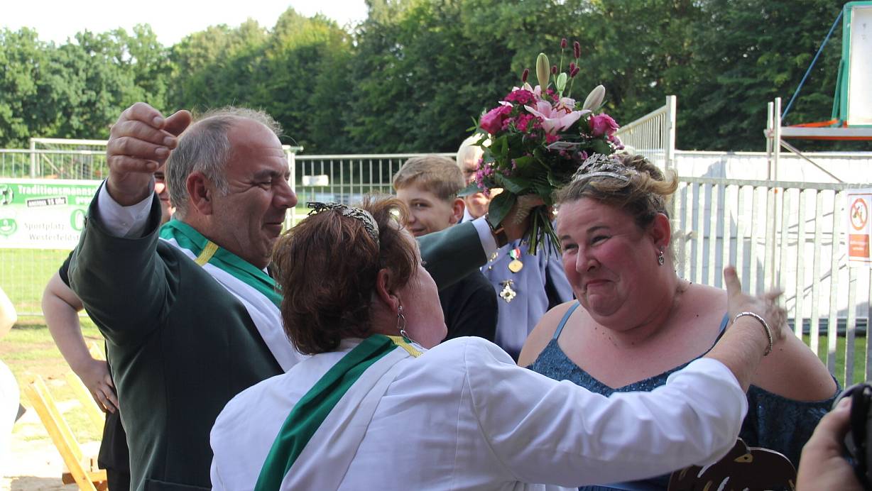 Stadtoberhaupt ist für einen Moment Schützenkönig. Doch dann folgt die Aufklärung. Später küren die Neustädter Schützen ihre amtierende Königin zur neuen.