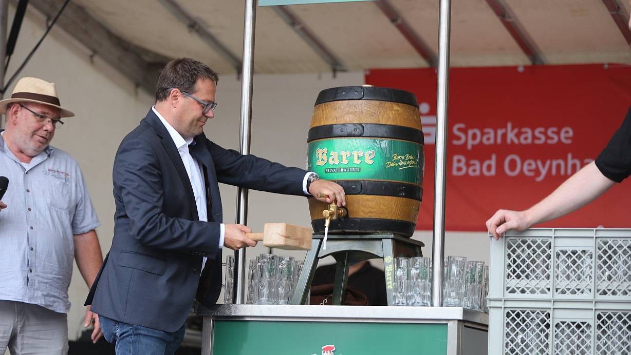 Gleich der erste Schlag saß: Souverän eröffnete Bürgermeister Lars Bökenkröger die Rehmer Traditionsveranstaltung. | © Nicole Sielermann