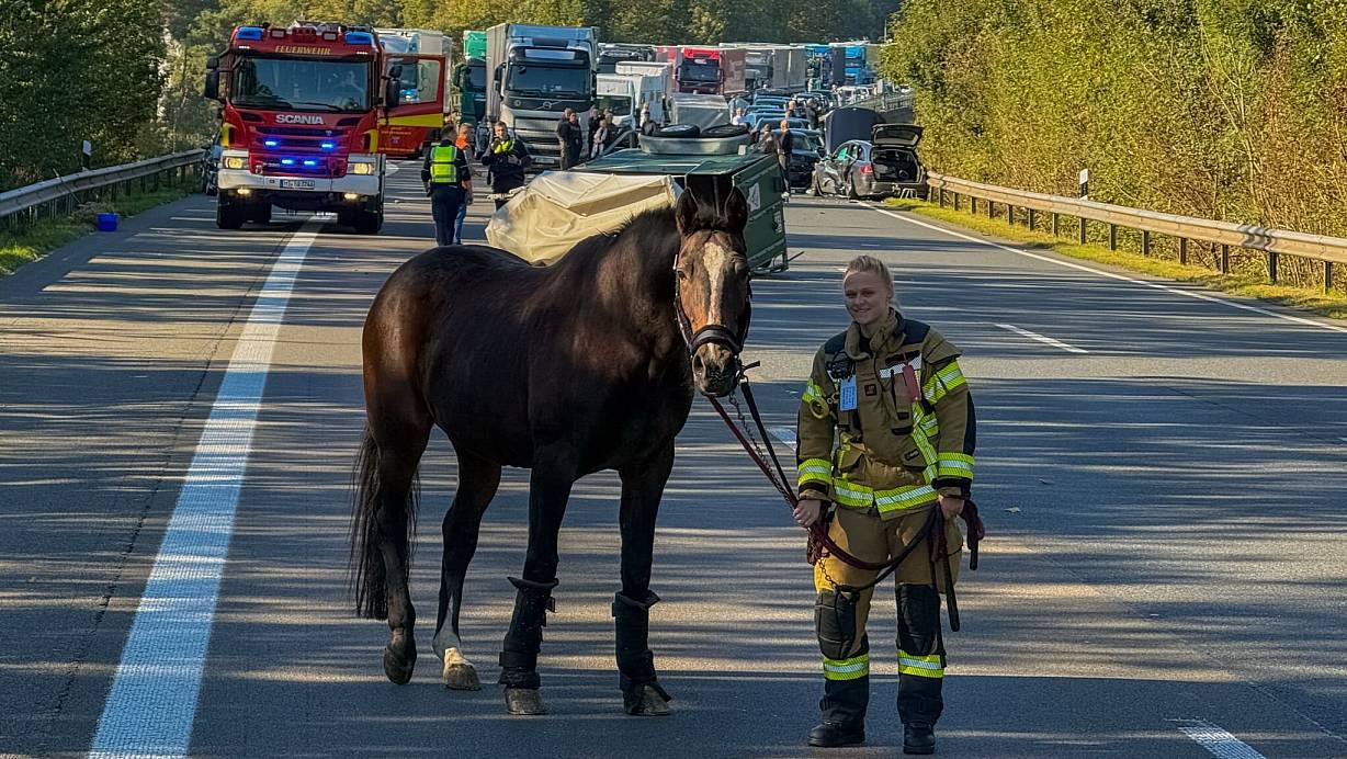 Mit dem Pferd über die Autobahn: Ungewöhnlicher Einsatz für die Feuerwehr Bad Oeynhausen