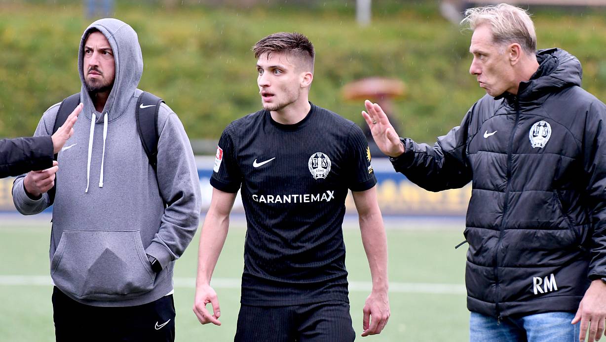 Fahren wieder runter: Lohes Trainer René Müller (v. r.) sowie die Spieler Adrian Mavretic und Andreas Vidovic. | © Jürgen Krüger