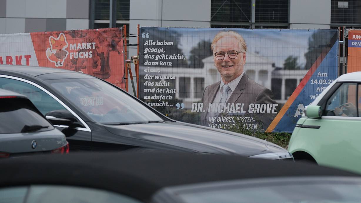 Auf seinen Wahlplakaten warb der Bürgermeisterkandidat der AfD mit Doktortitel um Wählerstimmen wie hier auf der verkehrsreichsten Kreuzung am Bauzaun des geplanten Gesundheitszentrums Medical City Plaza. | © Ulf Hanke