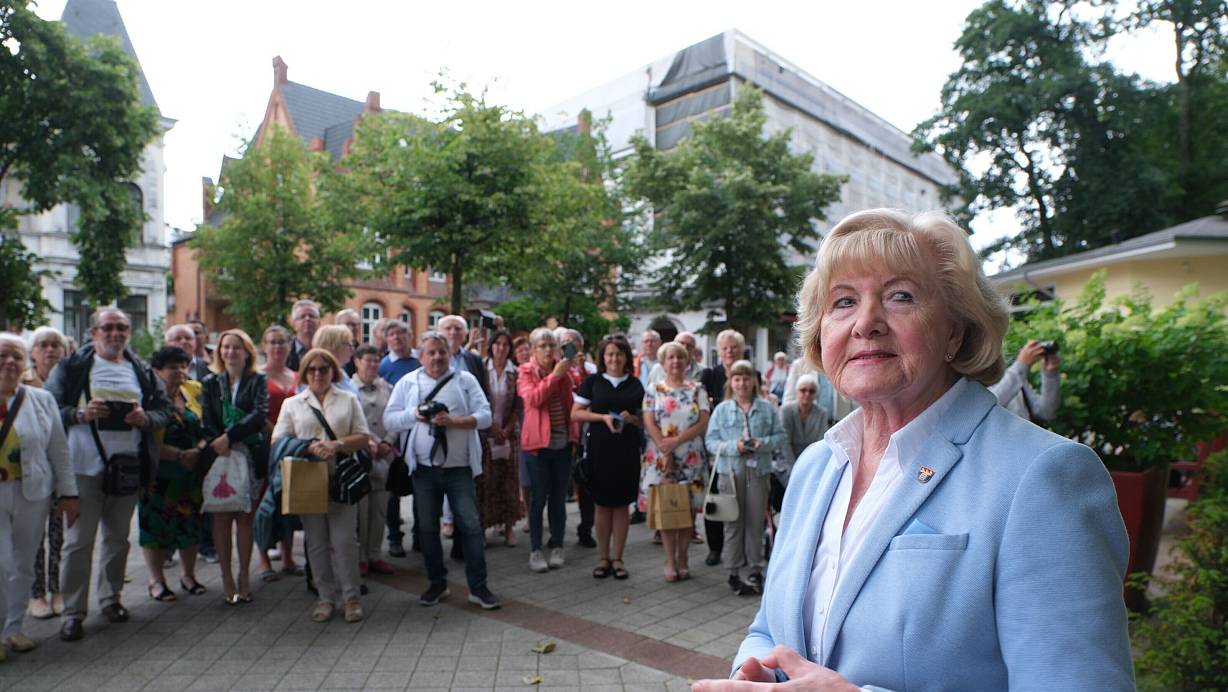 Die stellvertretende Bürgermeisterin Helke Nolte-Ernsting (CDU) empfängt die polnische Delegation aus Inowroclaw auf dem Inowroclawlplatz. | © Ulf Hanke