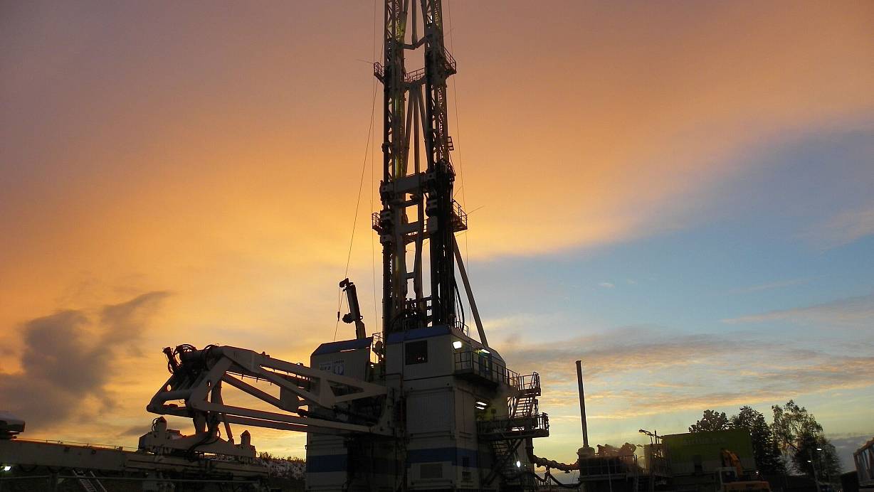 Bohrturm bei Sonnenuntergang: Die Tiefengeothermie könnte Bad Oeynhausen eine nachhaltige Wärmequelle bieten. | © H. Angers Söhne