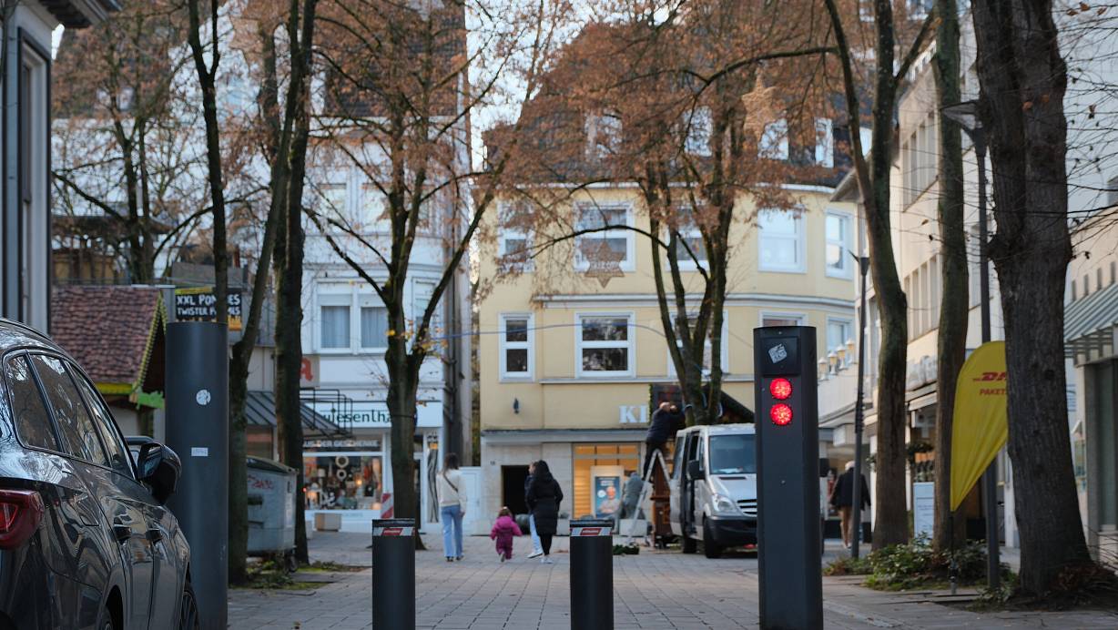 Die Polleranlage in der Paul-Baehr-Straße vor der ehemaligen Deutsche-Bank-Filiale ist bislang die einzige in der Fußgängerzone. | © Ulf Hanke