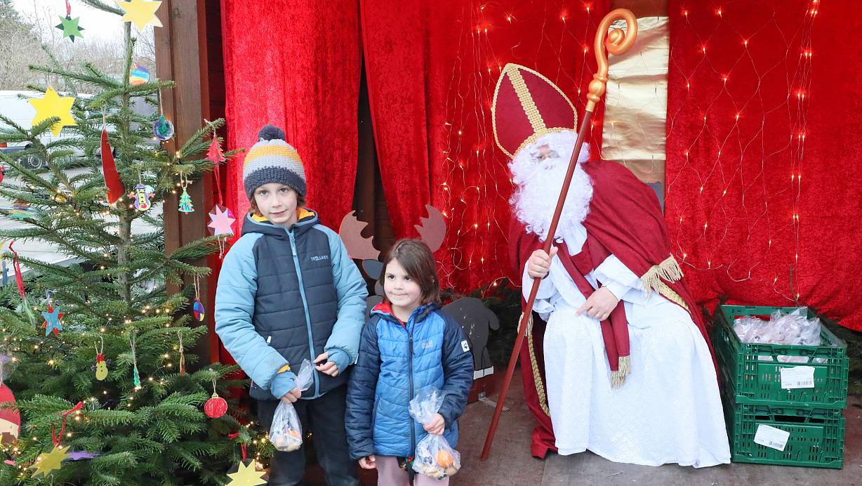 Der Nikolaus ist überpünktlich: Matthis (8, links) und Lina (5) haben schon Geschenke eingesackt | © Justus Rahn