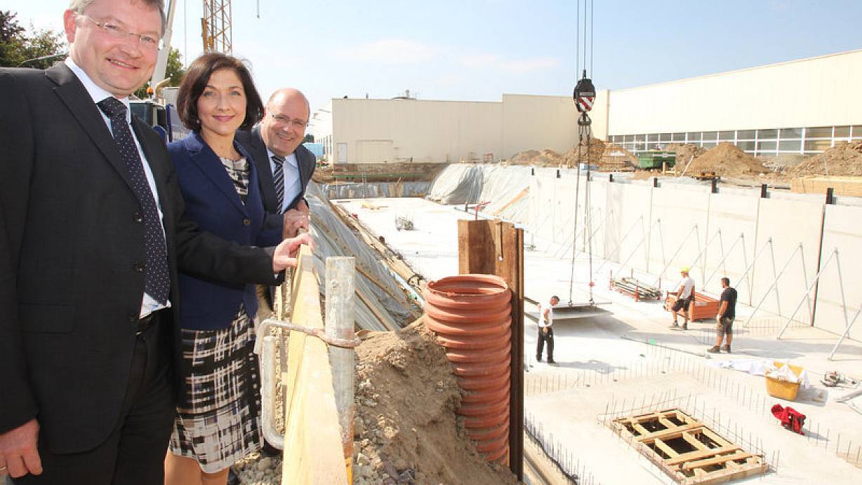 Bad Oeynhausen-Dehme (nisi). Katherina Reiche ist begeistert: "Eine Komplexität in dieser Form habe ich so noch bei keinem Unternehmen gesehen", erklärte die Parlamentarische Staatssekretärin im Bundesumweltministerium. Zusammen mit Steffen Kampeter, Parlamentarischer Staatssekretär im Bundesfinanzministerium, informierte sie sich bei der Denios AG über den Null-Emissions-Neubau und das Leuchtturmprojekt des Unternehmens für "It's OWL".