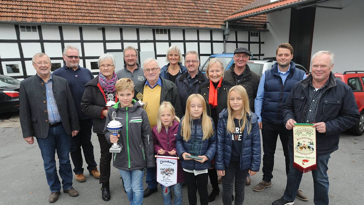 Halten zusammen: Auch RGZV-Vorsitzender Bernd Viermann (l.) gratulierte den erfolgreichsten Ausstellern der Ortsschau. Die fand in der Halle am Gasthaus Kaiser Dorfkrug statt. | © Joern Spreen-Ledebur