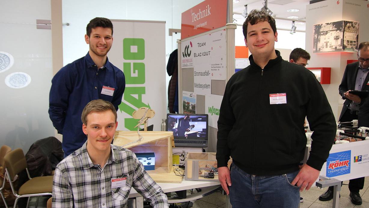 Jan-Luca Grillemeier (19 Jahre), René Pascal Knickmeier (21) und Marcel Höcker (18), vom Berufskolleg Lübbecke konnten mit ihrem Projekt den dritten Platz im Fachbereich Technik, bei „Jugend forscht“, ergattern. „Wenn man im Urlaub ist und der Strom zu Hause ausfällt, können Lebensmittel im Kühlschrank verderben oder die Heizung im Aquarium ausfallen“, erzählt Knickmeier. Um das zu verhindern, entwickelten sie ein Stromausfallmeldesystem, das den Hausbesitzer im Urlaub, über die Stromsituation zu Hause informieren soll.