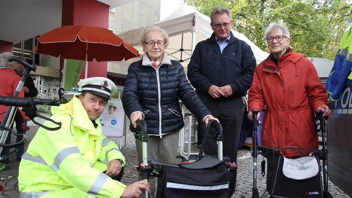Damit dieser Trend weiter anhält, lohnt es sich, am Thema dranzubleiben, sind sich Polizei und Seniorenbeirat einig und haben zu Beginn der dunklen Jahreszeit erneut die Aktion in Espelkamp gestartet. „Dazu kommt noch das diesige Wetter und Ende Oktober geht die Sommerzeit zu Ende. Plötzlich wird es noch eine Stunde früher dunkel", weiß Klaus Torno um die Gefahren. Der Wochenmarkt am Freitagmorgen sei die beste Gelegenheit viele Menschen zu erreichen und anzusprechen. Der ideale Platz für eine solche Aktion.