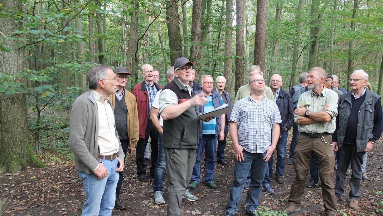 Am Mittwoch hatte Kreisheimatpfleger Friedrich Klanke zum Auftakt der Jahresmitgliederversammlung des Kreisheimatbundes mitten in den Wald eingeladen, in den „Fahrensbruch" in Espelkamp. Als Leiter der Waldbegehung hatten die Heimatfreunde Förster Peter Heidmeier, zuständig für den Forstbetriebsbezirk Lübbecke-Ost (der sich von Tonnenheide, über Espelkamp und Lübbecke bis nach Hüllhorst erstreckt), gewinnen können sowie den Leiter des Forstamtes OWL Holger-Karsten Raguse, der später im Rathaussaal einen Einblick in die Waldschadenslage im heimischen Kreisgebiet und zu eingeleiteten Maßnahmen gab.