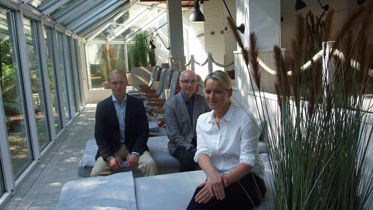 Der Ruheraum war einer der ersten Erneuerungen unter der Ägide des neuen Betriebsleiters. Das Foto zeigt (v. l.) Dirk Thieme, Klaus Hagemeier, Stadtwerke-Vorstand, und Aquapark-Managerin Frauke Quell. | © Karsten Schulz